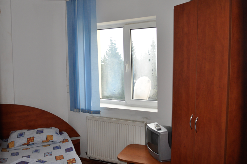 Camera single, aflata la etajul 1 cu vedere spre Varful Papusa si partia de schi de pe acesta.